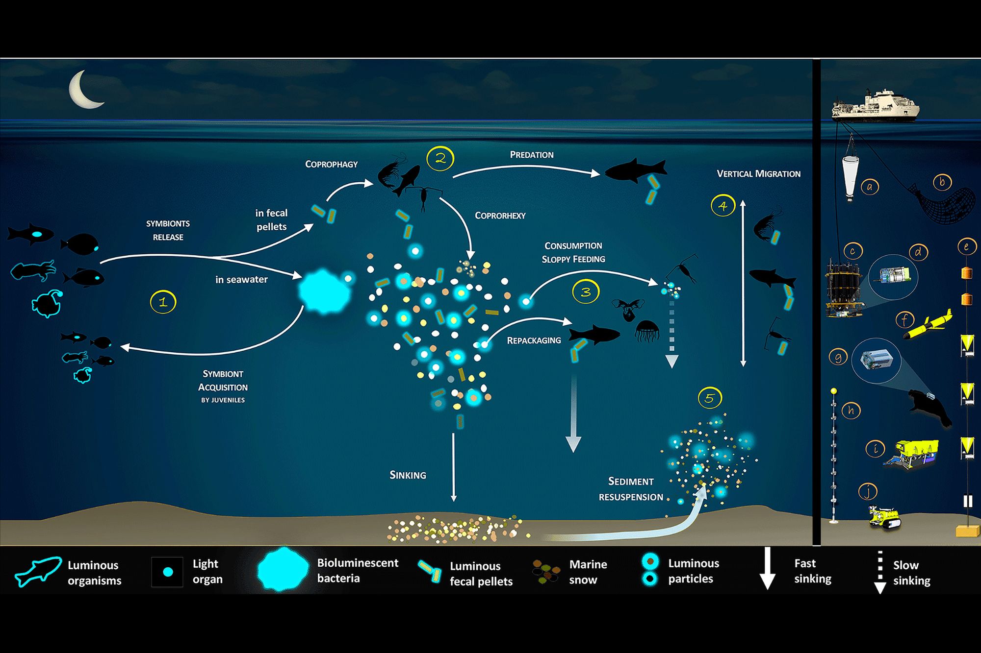 Cette lumière naturelle agit comme un véritable phare sous-marin, attirant les organismes marins plus gros qui viennent alors manger ces particules brillantes. En somme, dans l’obscurité des océans, les particules qui brillent ont beaucoup plus de chances d’être repérées et consommées que celles qui restent invisibles.